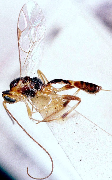 Labels: "Sachalien, S. Kuwayama", "‘å‘òŽŽŒ±—Ñ [= Osawa exp. forest], VIII-'21", "Mesochorus kuwayamae", "Type, Matsumura", "WIRT, Apanteles ordinarius Ratz."